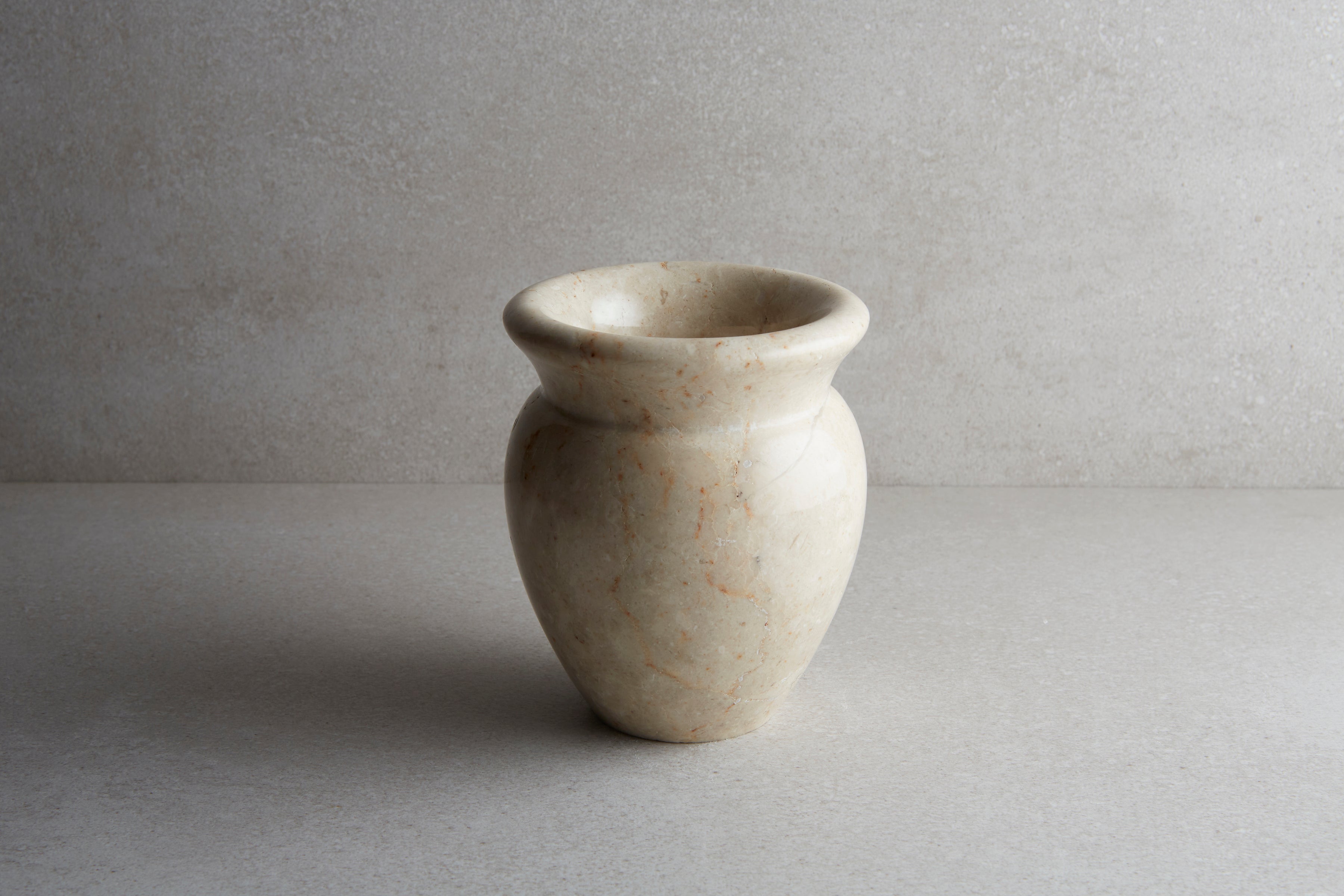 Our marble vase looks great either by its self or with a small bouquet in it. Each is unique so color/grain texture may vary.